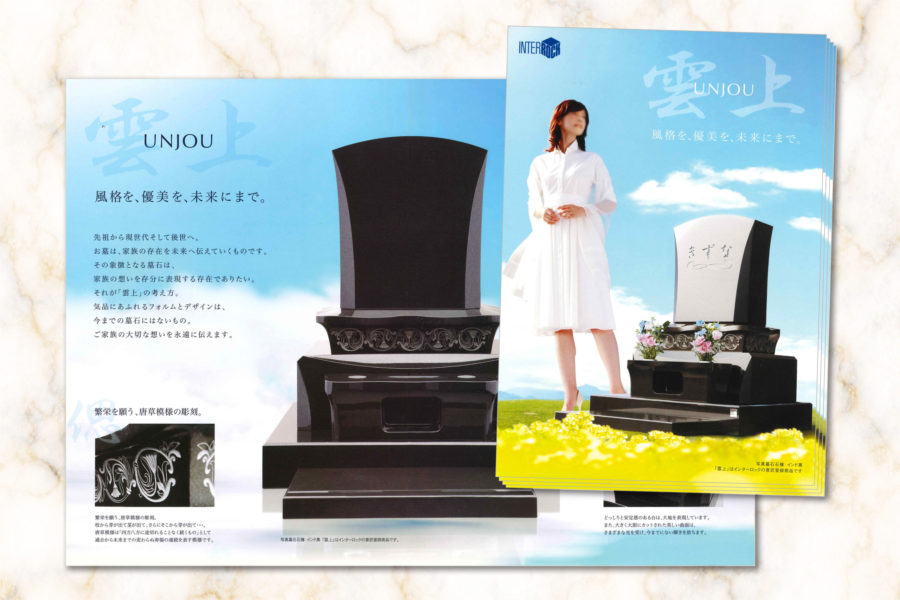 「お墓はもっと自由であっていい」。そんな思いから誕生したデザイン墓石には、それぞれに込められた想いやコンセプトがあります。そして、その魅力をしっかりとお伝えするために、各墓石ごとに個別のパンフレットをご用意しています。 パンフレットには、さまざまな角度から撮影した写真や、デザインコンセプトの解説、おススメ石種のバリエーション、彫刻例などを掲載。お墓を検討される際に、具体的なイメージを持っていただける内容になっています。紙面でじっくりご覧いただくことで、写真だけでは気づかない細かなこだわりや魅力を感じていただけるはずです。 -
