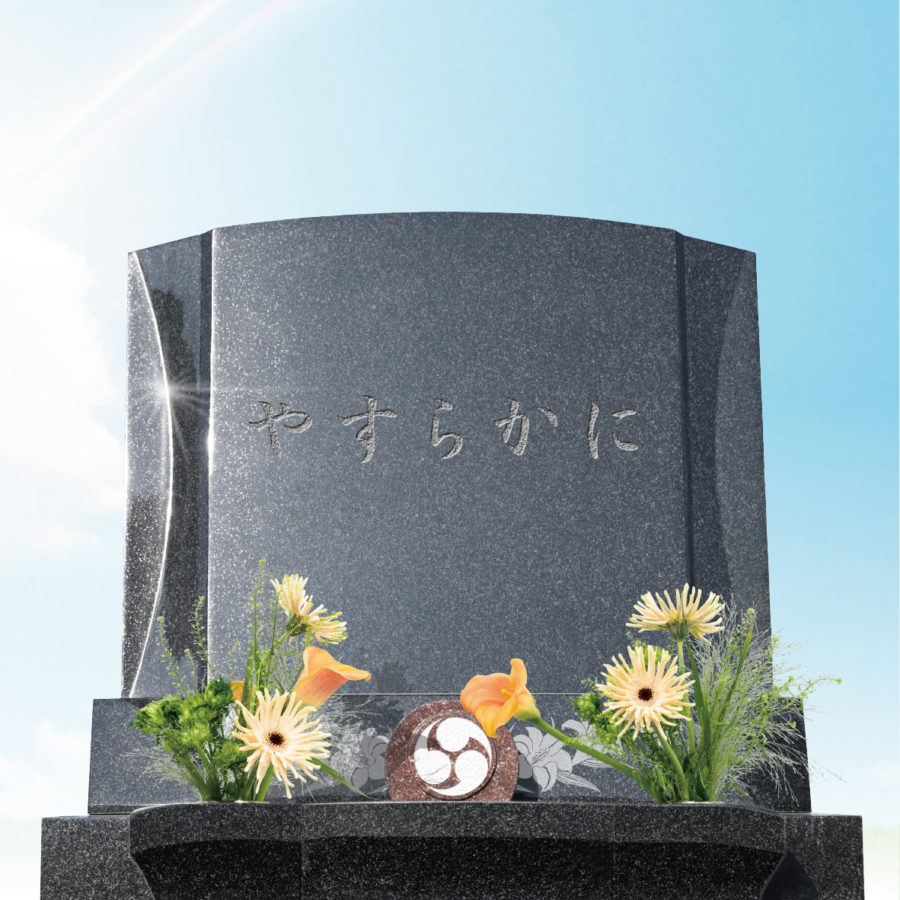 すっきりとしたフォルムの中に施された百合の彫刻が、全体に上品な華やかさを添えています。 ご先祖様との再会の場が、いつもやさしい想いに包まれる――そんな祈りを込めたデザイン墓石です。詳しくは、お近くのインターロック墓石取扱店までお気軽にお問い合わせください。